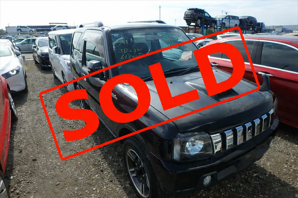 2009 Suzuki Jimny JB23W Wild Wind 4WD K6A 660cc Turbocharged / Intercooled, Automatic Transmission, ZJ3 Bluish Black Pearl Exterior Paint w/ Black Leather Interior – Red Accents, Full Size Spare Rear mounted tire, Clarion Audio, Keyless Entry, Power folding Side Mirrors, Adjustable Headlight Angle, Power Windows, 175/80R16 A/T Tires, 16″ Alloy Wheels. Grade 4 Exterior & B Grade Interior Rating from Japan Auction. No accidents / 67,899 Original Kms.